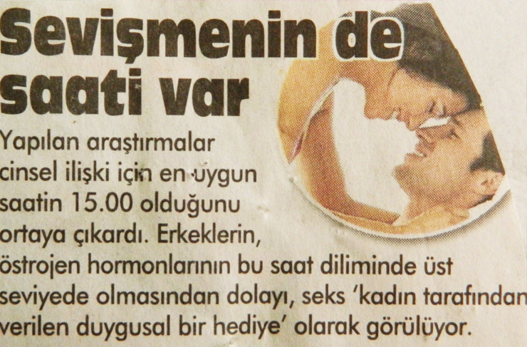 Çay Saati, Yolculuk Saati, Yemek Saati, İş Saati, Eğlence Saati, Uyku Saati… Her şeyin “önceden” belirlenen bir saati olur ama sevişmenin saati olmaz! Çünkü sevişmek “Zaman” tanımaz. O, her zaman ve her yerde “hazır” vaziyette bekler!