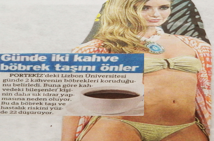 Böbreğinde birikmiş taşlardan kıvranıyormuş… Arkadaşları ona ara sıra ‘Kahve’ ikram edip, böbreğindeki taşları dökmesine yardımcı olmayı akıl edememişler… Ama ne zaman etek giyse, arkadaşları ‘Bildiğin ne varsa, eteğindeki taşları dök’ diye ısrarcı davranıyorlarmış. Bundan böyle etek yerine, bikiniyle dolaşmaya karar vermiş.