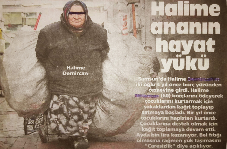 Geçinmek, eve bir lokma ekmek götürmek için ‘Mücadele’ eden Halime Ana’nın ‘Yükü’ çok ağır. Halime Ana’nın vay haline! Halime Ana! Alın teri ile helalinden bir kuruş kazanıyor, evine ekmeğini götürüyorsun. Sen hiç ‘Utanma!’ alın teri dökmeden ‘Malı Götürenler’ utansın!