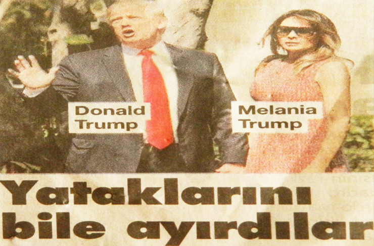 Melnia TRUMP (ABD-First Lady): “Donald’ın ‘Sırt ağrılarını’ bahana ederek, salondaki kanepede yattığını söylemesine sakın inanmayın! Yaptığı çapkınlıkların foyası ortaya çıkınca ‘Ceza’ olarak salondaki kanepeye bizzat ben postaladım!”