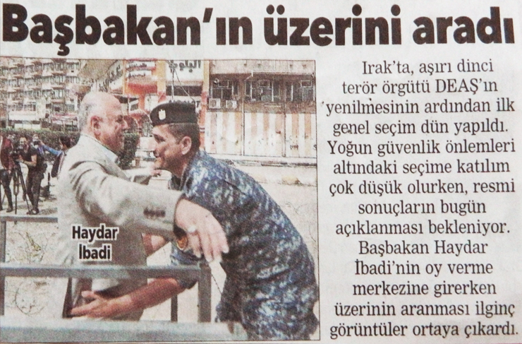 Burası Irak! Yapılan son genel seçimlerde oldukça sıkı ‘Güvenlik’ önlemleri alındı. Seçimler sırasında belki de ‘Dünya Siyaset Tarihinde’ bir ilk yaşandı… Ülkeyi yöneten hükümetin başbakanına bile ‘Güvenlik’ nedeniyle ‘Üst Araması’ yapılarak, oy kullandırıldı!