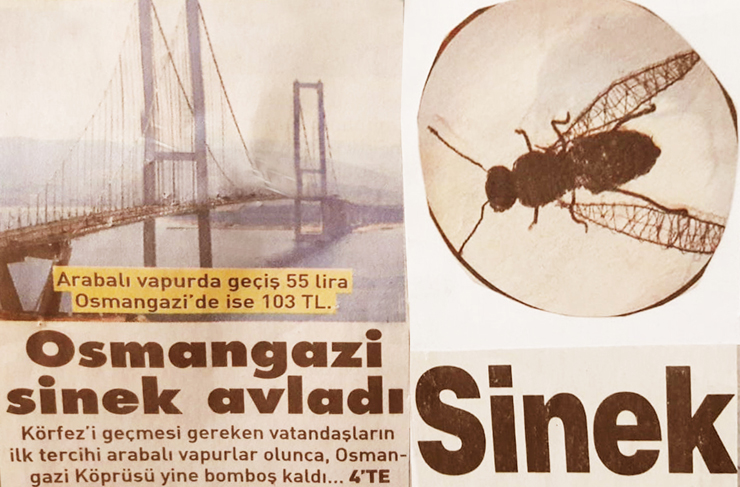 Sürücüler, Osmangazi Köprüsünden geçiş ‘Pahalı’ diye, daha ucuz olan arabalı vapurları tercih ediyorlar. Anlayacağınız ‘Köprü Sinek Avlıyor!’ Bazı belediyeler ise pis kokular saçan, dezenfekte edilemeyen, sinek yuvası haline gelen çöp konteynırlarındaki yüz binlerce sineği ‘Avlamayı’ ihmal ediyorlar. Kısacası belediyeler köprü gibi sinek avlayamıyor!