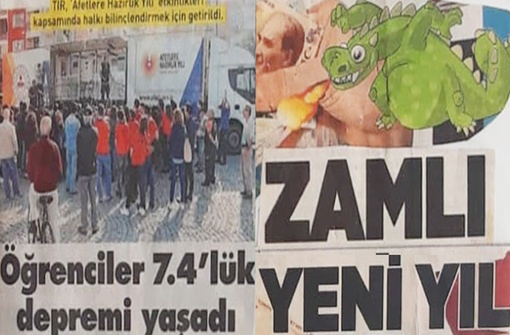 Çanakkale’de AFAD tarafından öğrencilere olası deprem anında yapılması gerekenleri Simülasyon yöntemiyle anlatıldı… Öğrenciler, 7.4 büyüklüğündeki olası depremi tatbikatla öğrenmiş oldu. Vatandaşlara da olası zam depremlerine karşı önceden “Zam Tatbikatı” yaptırılmalı. Böylece vatandaş, önceden tedbirlerini alır zam şokunu yaşamaz.