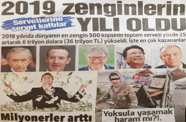 En varlıklı zenginlerle en yoksulları arasındaki ‘Ekonomik Denge’ giderek bozuluyor, ‘Makas’ açılıyor. Dünyada en varlıklı ‘Bir’ Zengine karşılık ’14 Milyon’ yoksul insan! Dünyanın nimetleri ‘Adaletsiz’ paylaşılıyor. 2019 ‘Zenginlerin Yılı’ olmuş. Hal böyleyken, geçmiş yıllar dahil günümüze kadar her yıl ‘Yoksulların Yılı’ olarak ilan edilmeli!