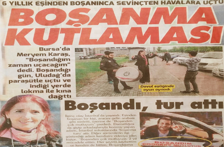 Değişik zaman ve kentlerde yaşanan aynı iki olay! Konu ise ‘Boşanma’ Davaları! Evlenirken düzenlenen ‘Bekarlığa Veda Partileri’ ardından da Nikah ve Düğün törenleri… Şimdi de boşanırken, ‘Evliliğe Veda Partisi’ kutlamaları ‘Gelenek’ haline gelmeye başladı.