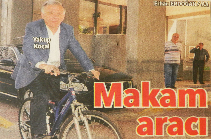 800 bin liralık zırhlı, lüks araç yerine, 800 liralık makam aracı… Akaryakıt israfı, makam şoförü ve koruma yok! Milletin parasını çar-çur etmek yok! Bisiklet, aynı zamanda halkın arasına karışarak bütünleşmeyi, iç içe olmayı, halk ile iletişim kurmayı sağlıyor.