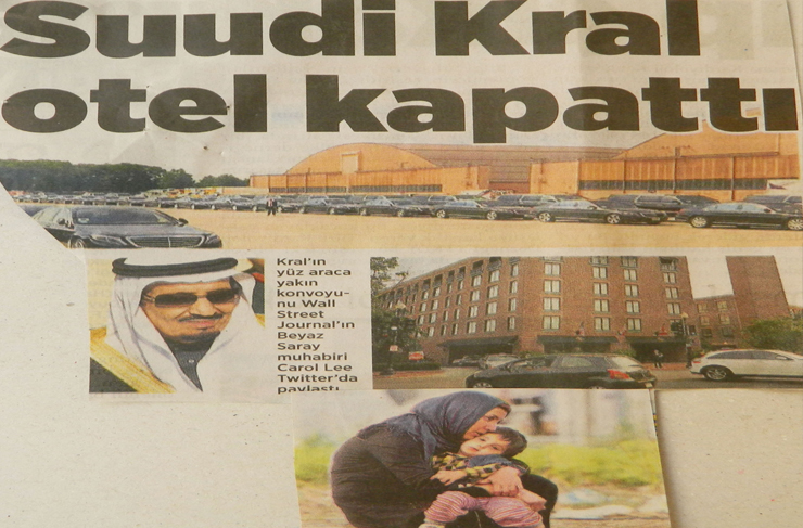 Ülkesini kendi malıymış gibi yöneten Suudi Kralı, ABD’yi ziyaretinde 222 odalı oteli birkaç günlüğüne kiralayarak yüz binlerce dolar ödedi… Bir saatte kazanılan ‘petrol gelirleri’ ile milyonlarca “Suriyeli mülteciyi barındırmayı” aklının ucundan geçirmiş midir acaba?