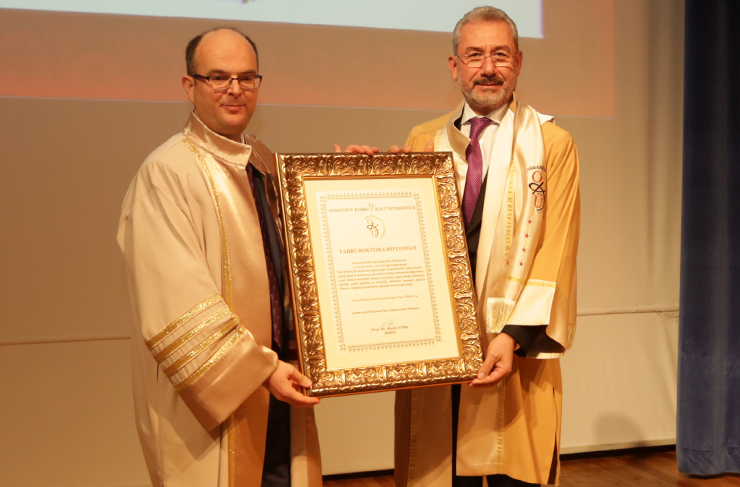 ‘Fahri Doktora’ takdim töreni, dün, Osmaniye Korkut Ata Üniversitesi amfisinde düzenlendi. Törene, TBMM İdare Amiri ve Ak Parti Hatay Milletvekili Orhan Karasayar, Osmaniye Valisi Kerem Al, MÜSİAD Başkanı Nail Olpak, Osmaniye Korkut Ata Üniversitesi Rektörü Prof. Dr. Murat Türk, üniversite senatosu, öğretim üyeleri, bölge üniversitelerinin rektörleri, kamu kurum ve kuruluşları ile sivil toplum kuruluşları yöneticileri, basın mensupları ve çok sayıda davetli katıldı.