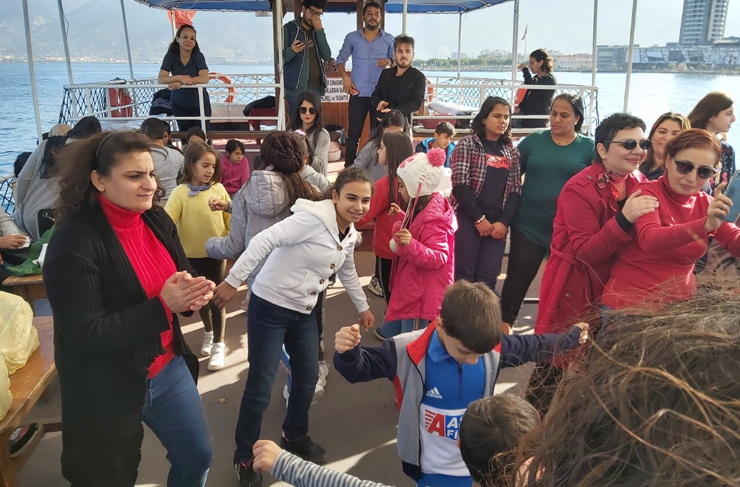 Çoğunluğu İskenderun’u denizden ilk defa gören çocuklar, neşeli saatler geçirdiler. Tekne gezisi sırasında Haluk Levent’in İzmir Marşı ile coşan çocuklar, bir ağızdan İzmir Marşı’nı coşkuyla söylediler.