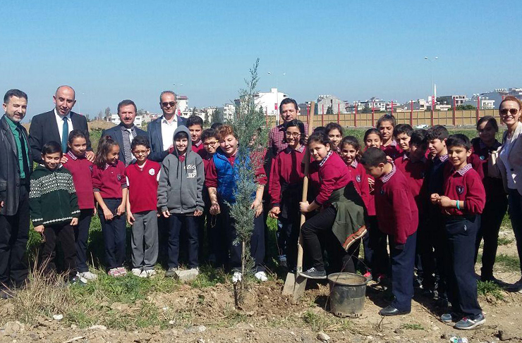 İSTE Merkez Kampüs’te gerçekleştirilen fidan dikme etkinliğine İSTE Genel Sekreteri Yılmaz Çiğdem, Daire Başkanları, Gazi Ortaokulu Müdürü Zeyid Doğan, Müdür Yardımcısı Mehmet Esmer, Sınıf Öğretmeni Özlem Lüleci, İngilizce Öğretmeni Selda Deveci ile öğrenciler katıldı.