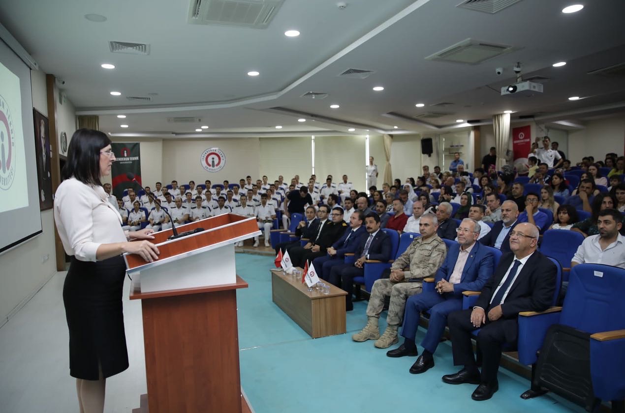 Saygı Duruşu ve İstiklal Marşı ile başlayan programda ilk olarak Güverte 2026 Öğrencileri Denizcilik Meslek Yeminini etti. Daha sonra Barbaros Hayrettin Gemi İnşaatı ve Denizcilik Fakültesi Dekan V. Prof. Dr. Meltem Eken konuşma yaptı. Herkesi selamlayarak başladığı konuşmasında Prof. Dr. Eken; “Dünya Denizcilik Örgütü’nün STCW konvansiyonun belirlemiş olduğu standartlarda ve denizcilik mesleğinin bir gereği olarak üniformalı olarak, gelişmiş simülatörler, laboratuar ve derslik altyapısı ile alanında uzman, deniz kökenli ve tecrübeli yetkin eğitmenlerle eğitim öğretim hizmetlerini sürdürmekteyiz” dedi.