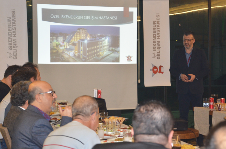 Düzenlenen yemek programında hastane ile ilgili bilgiler veren ve işyeri hekimleriyle bir araya gelmekten mutluluk duyduklarını ifade eden Özel İskenderun Gelişim Hastanesi İşyeri Hekimi Dr. Cengiz Gündüz ise; “Özel İskenderun Gelişim Hastanesi, Hatay’daki en büyük hastane konumundadır. 206 yatak kapasitesine sahip hastanemizde; 111 servis yatağı bulunurken, Yeni Doğan Yoğun Bakım Ünitesinde 38, Genel Yoğun Bakım Ünitesinde 39, Koroner Yoğun Bakım Ünitesinde 13 ve KVC Yoğun Bakım Ünitesinde 5 olmak üzere, toplam 95 yoğun bakım yatağı bulunmaktadır.