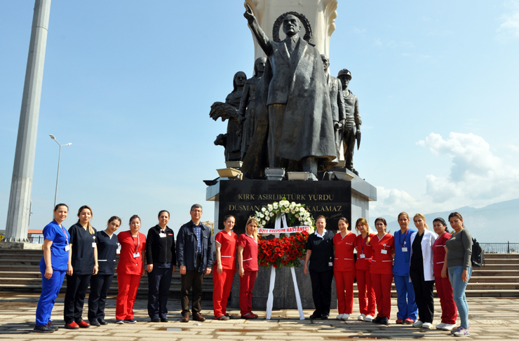 İskenderun Gelişim Hastanesi, ’12-18 Mayıs Hemşireler Haftası’ münasebetiyle, İskenderun Atatürk Anıt Alanı’nda çelenk sunma töreni düzenledi. Genel Koordinatör Prof. Dr. Bülent Tekinsoy, Başhemşire Hatice Uygun ve hemşirelerin hazır bulunduğu törende, bir dakikalık saygı duruşunda bulunuldu ve akabinde İstiklal Marşı okundu.