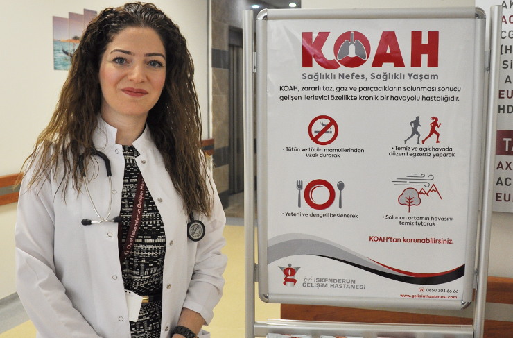 KOAH’ın en yaygın belirtileri; nefes darlığı, öksürük, balgam çıkarma, göğüste tıkanma, hırıltılı solunumdur. Ancak bu yakınmalar ani başlayıp, kısa süren, gelip geçici bir şekilde olmayıp, aylarca, yıllarca devam eden ve giderek artan bir seyir gösterir. KOAH hastalarını yaşamlarını kolaylaştırmak için sigarayı bırakmaları, düzenli egzersiz yapmaları, doğru beslenmeleri çok önemlidir” dedi.