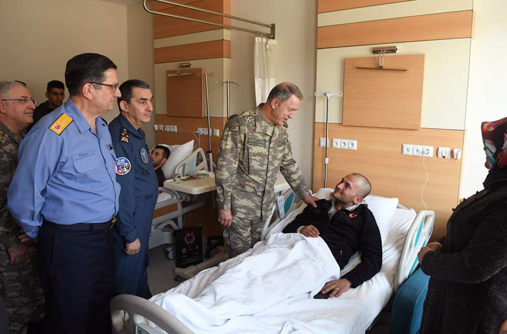 Genelkurmay Başkanı Orgeneral Hulusi Akar, geçtiğimiz hafta sonu yine bölgemize gelerek Hatay ve Kilis’te inceleme ve denetlemelerde bulundu. Akar, beraberinde Kara Kuvvetleri Komutanı Orgeneral Yaşar Güler, Deniz Kuvvetleri Komutanı Koramiral Adnan Özbal ve Hava Kuvvetleri Komutanı Orgeneral Hasan Küçükakyüz olmak üzere, Zeytin Dalı Harekâtı kapsamında 1 Mart 2018 tarihinde çatışmalarda yaralanan ve Kırıkhan Devlet Hastanesinde tedavi görmekte olan kahraman askerlerimize de ziyaret etti.