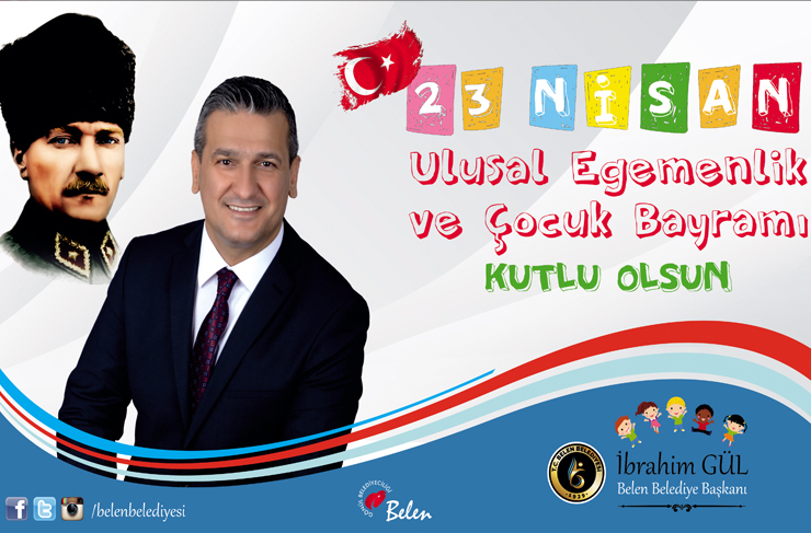 Belen Belediye Başkanı İbrahim Gül, 23 Nisan Ulusal Egemenlik ve Çocuk Bayramının 101. yılında yazılı bir mesaj yayınladı. Başkan Gül, yayınladığı kutlama mesajında şu ifadelere yer verdi.