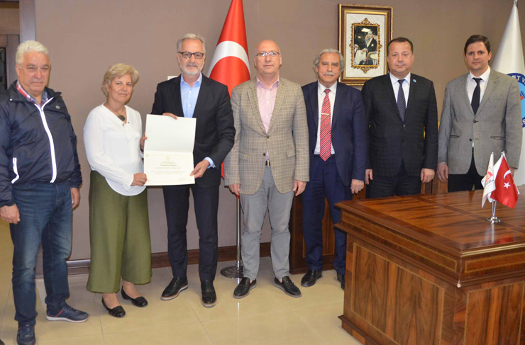 İskenderun Halk Kütüphanesi Müdürü Harika Leyla Yaman, Kültür ve Eğitime değer katan İTSO’ya desteklerinden dolayı Teşekkür Belgesini Yönetim Kurulu Başkanı Levent Hakkı Yılmaz’a takdim etti.