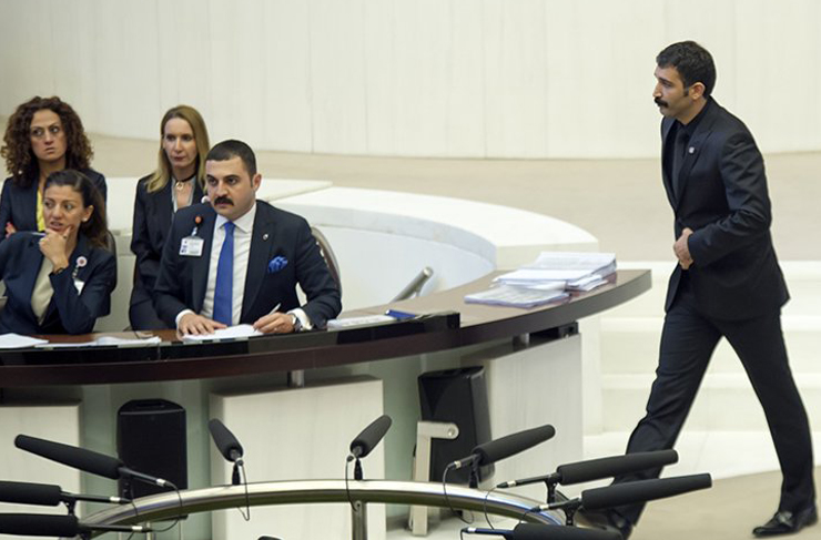Tam adı Barış Atay Mengüllüoğlu olan vekil yemin için kürsüye giderken Genel Kurul salonundaki izleyici locasından tepkiler yükseldi. Yemin törenini izleyen bir kişi, önce Atay’ı yuhaladı. Ardından da kalabalık bir grup kürsüye doğru giden Atay’ı protesto etti.
