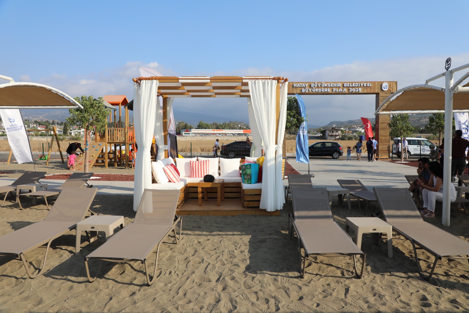 Büyükşehir tarafından şu ana kadar Hatay’a kazandırılan en büyük plaj olan Büyükdere Plajı, 13 dönüm alan üzerinde giyinme odaları, duş kabinleri, yürüyüş yolları, çocuk oyun parkı, oturma grupları ve dinlenme alanları gibi donatılarla vatandaşlara konforlu bir tatil olanağı sunuyor.