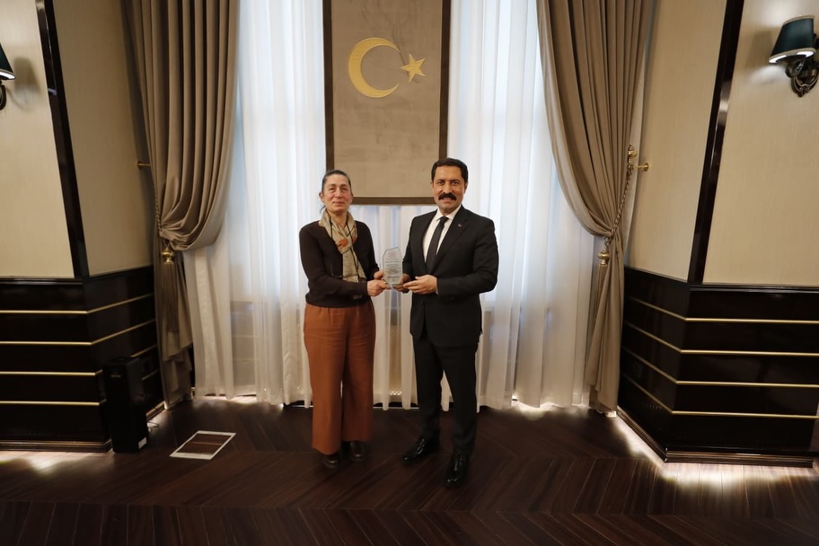 Hatay Valisi Mustafa Masatlı, Cumhurbaşkanı Recep Tayyip Erdoğan’ın ev sahipliğinde gerçekleştirilen Kültür ve Turizm Bakanlığı Özel Ödülleri ile Yaşayan İnsan Hazineleri Ödülleri Töreni kapsamında “Yaşayan İnsan Hazinesi” unvanına layık görülen ipek böcekçiliği ve dokumacılık ustası Emel Duman’ı Valilik makamında kabul ederek tebrik etti.