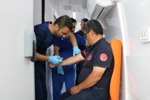 İskenderun, Arsuz ve Belen de bulunan İtfaiye Daire Başkanlığında verilen sağlık taramasında personellere; kan (hemogram, biyokimya karaciğer enzimleri, böbrek enzimleri) akciğer grafiği, işitme testi, EKG testi, Tetanos aşısı uzman ekipler tarafından gerçekleştirildi.