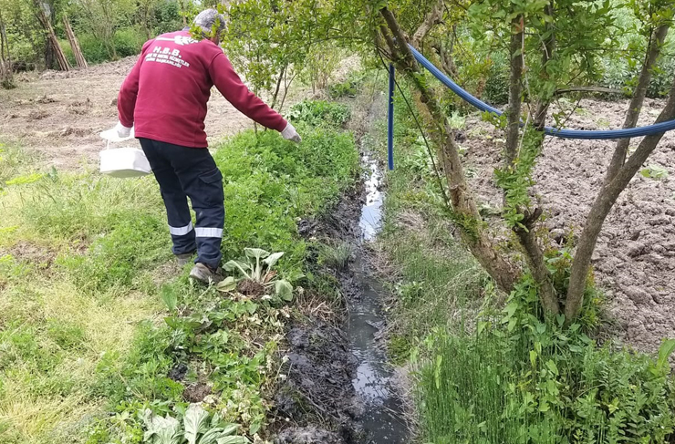 HBB ekipleri, Antakya ve Defne’de hayvancılığın yapıldığı alanlarda, kanalizasyon ve dere yataklarında ve söz konusu ilçelerin muhtelif noktalarında kene, pire, larva ve haşerelere karşı ilaçlama yaptı.