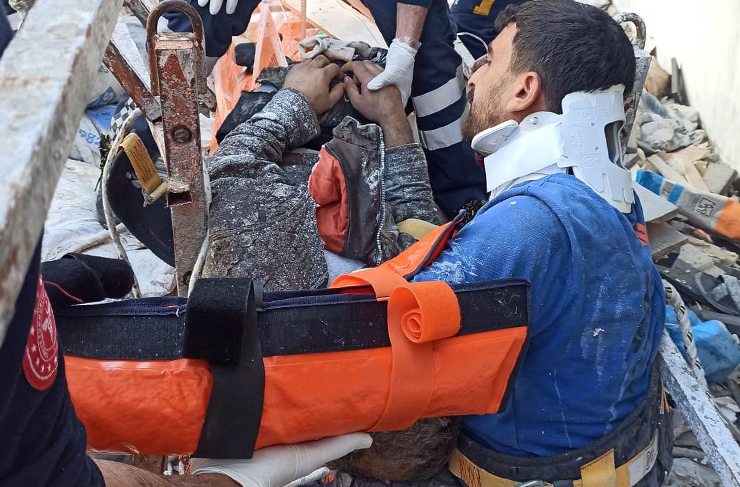 Dörtyol Numune Evler Mahallesi’nde yapımı devam eden bir inşaat iskelesinin çökmesi sonucu iki işçi yaralandı. Olay yerine ilk ulaşan Hatay Büyükşehir Belediyesi İtfaiye ekipleri oldu. İnşaat iskelesinin çöktüğünü gören vatandaşların 112 Acil Çağrı Merkezi ekiplerine haber vermesi ile harekete geçen HBB İtfaiye erleri, yaralı iki işçiyi sıkıştıkları yerden çıkararak sağlık ekiplerine teslim etti. (Haber Merkezi)