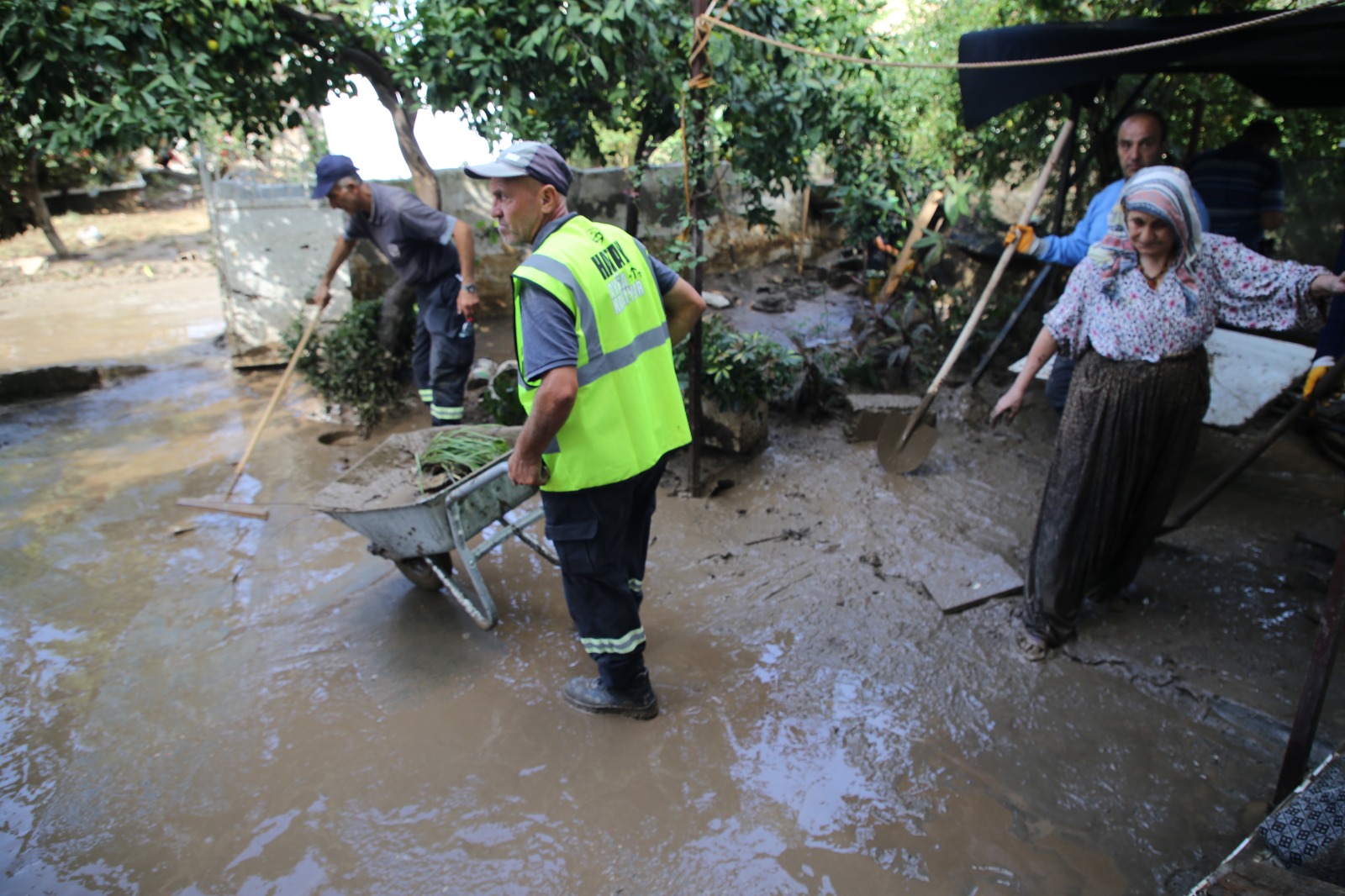 HBB ekipleri; kapanan yolları ulaşıma açmanın yanı sıra bütün sokaklarda ve zarar gören meskenlerde temizlik çalışmaları yürütüyor.