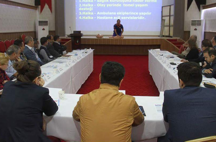 İlki 3 Kasım 2015’te Hatay İl Sağlık Müdürlüğü konferans salonunda verilmeye başlanan eğitim, 23 Aralık tarihinde son bulacak. Personelleri, çeşitli nedenlerle sağlık durumu kötüleşen bir insanın yaşamsal fonksiyonların sürdürülmesini sağlamak, durumunun kötüleşmesini engellemek ve acil durumlarda hareket planı oluşturmak gibi konularda donanımlı hale getirmek amacıyla gerçekleştirilen eğitim uygulamalarla pekiştirilecek.