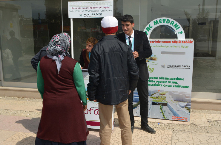 İl genelinde, halka eşit hizmet etmek anlayışıyla hareket eden HBB,  İskenderun Pac Meydanı’nda yapılması planlanan Katlı Kavşak (Pac Meydanı Battı Çıktı Projesi) için halkın görüş ve önerilerini dinliyor.