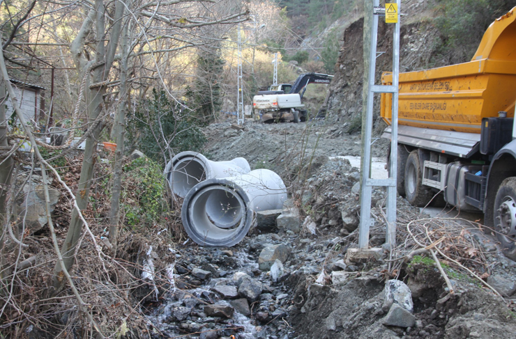 Yağışlar sebebiyle meydana gelen toprak kayması neticesinde kullanılamaz hale gelen yolu hummalı çalışmalarıyla kısa sürede eski haline getiren Büyükşehir ekipleri, Işıklı Mahallesi’nde tıkanan menfez ve yağmur suyu kanallarını iş makineleriyle temizledi.
