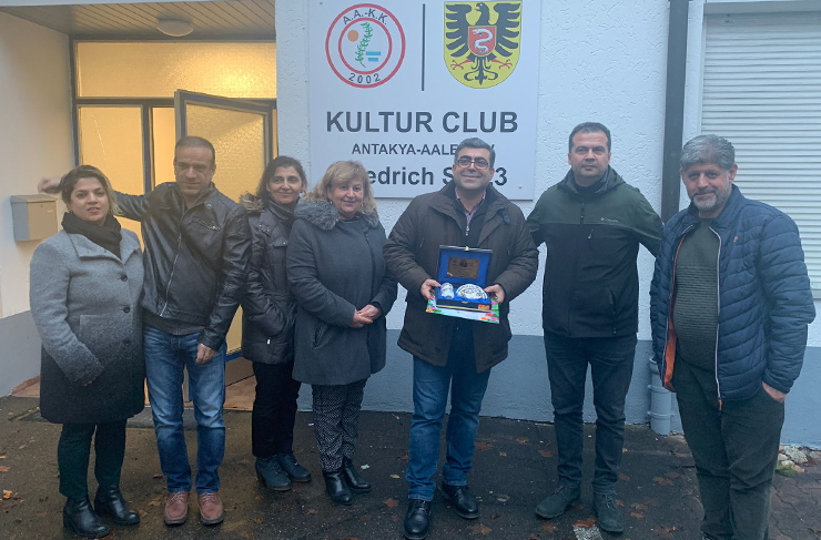 Çiçek, Almanya’daki hemşerilerine de Lütfü Savaş’ın selamlarını ileterek EXPO 2021 Hatay’a ait tanıtım broşürlerini sundu. (Haber Merkezi)