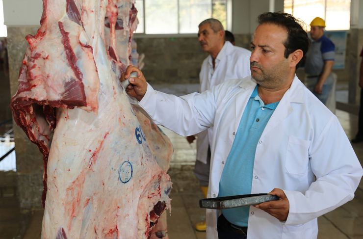 Hatay Büyükşehir Belediyesi Zabıta Daire Başkanı Ahmet Kilisli, Kurban Bayramı öncesi Hatay Büyükşehir Belediyesinin Antakya Merkez Mezbahanesi’nde denetim gerçekleştirdi.