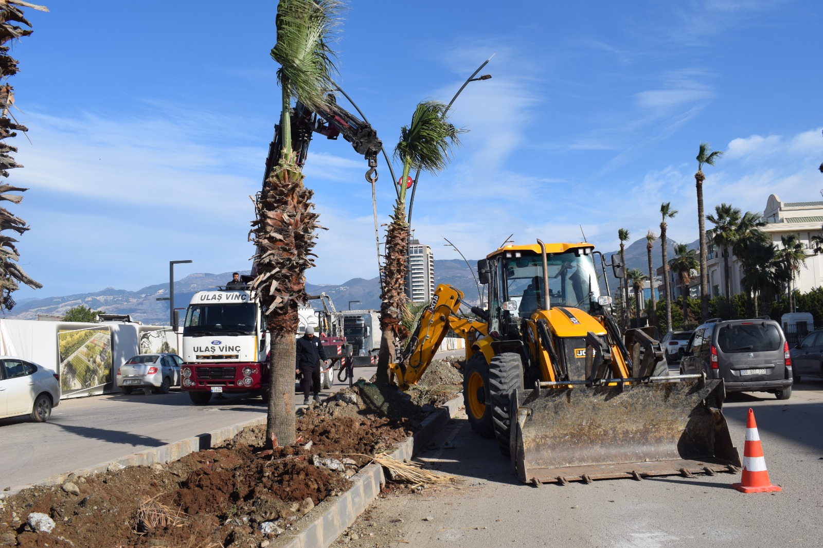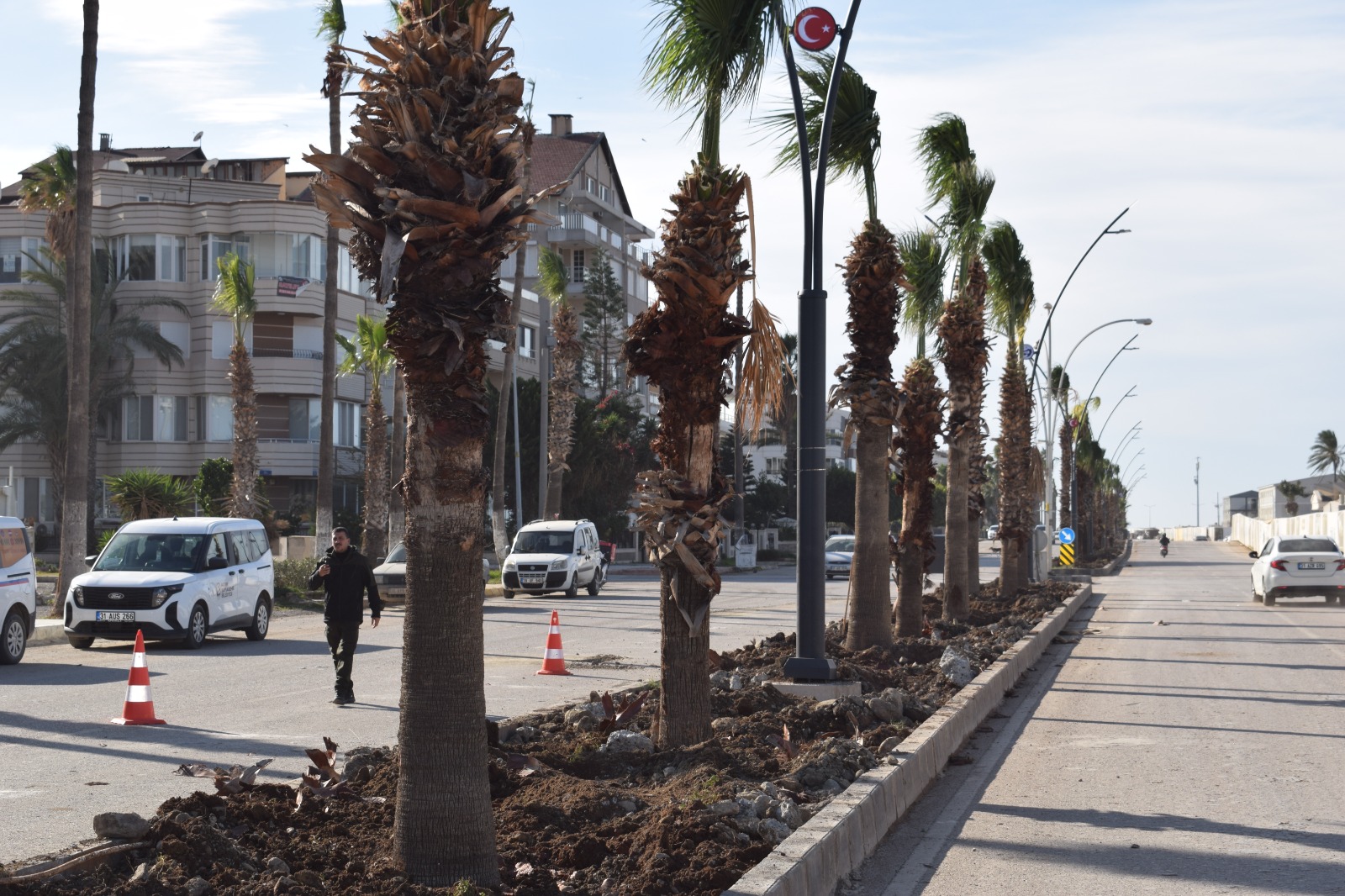İskenderun Sahil Yoluna Palmiyeler Yerleştiriliyor