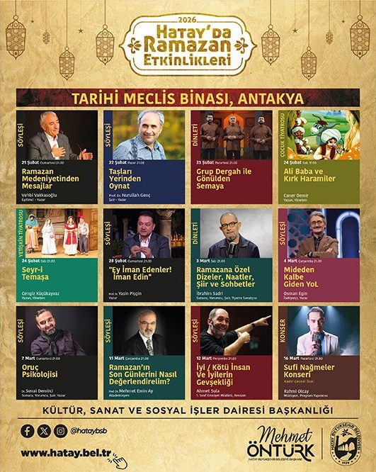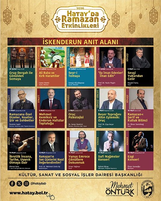 Ramazan ayı boyunca düzenlenecek etkinliklerle Hatay’da birlik ve beraberlik ruhunun daha da güçleneceğini belirten Kültür, Sanat ve Sosyal İşler Dairesi yetkilileri, tüm vatandaşları bu manevi atmosferi birlikte yaşamaya davet etti. (Haber Merkezi)