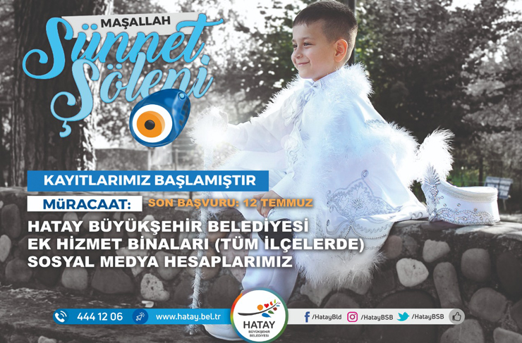 Hatay Büyükşehir Belediyesi tarafından geleneksel hale getirilen toplu nikâh ve sünnet şölenlerinin başvurusu 12 Temmuz 2019 Cuma günü sona erecek.
