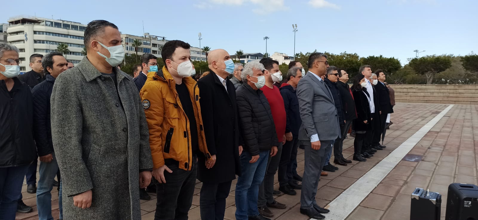 Atatürk Anıt Alanında bir araya gelen hekimler, ilk önce şehitlerimiz anısına bir dakikalık saygı duruşunda bulundu ve akabinde İstiklal Marşımızı söyledi.
