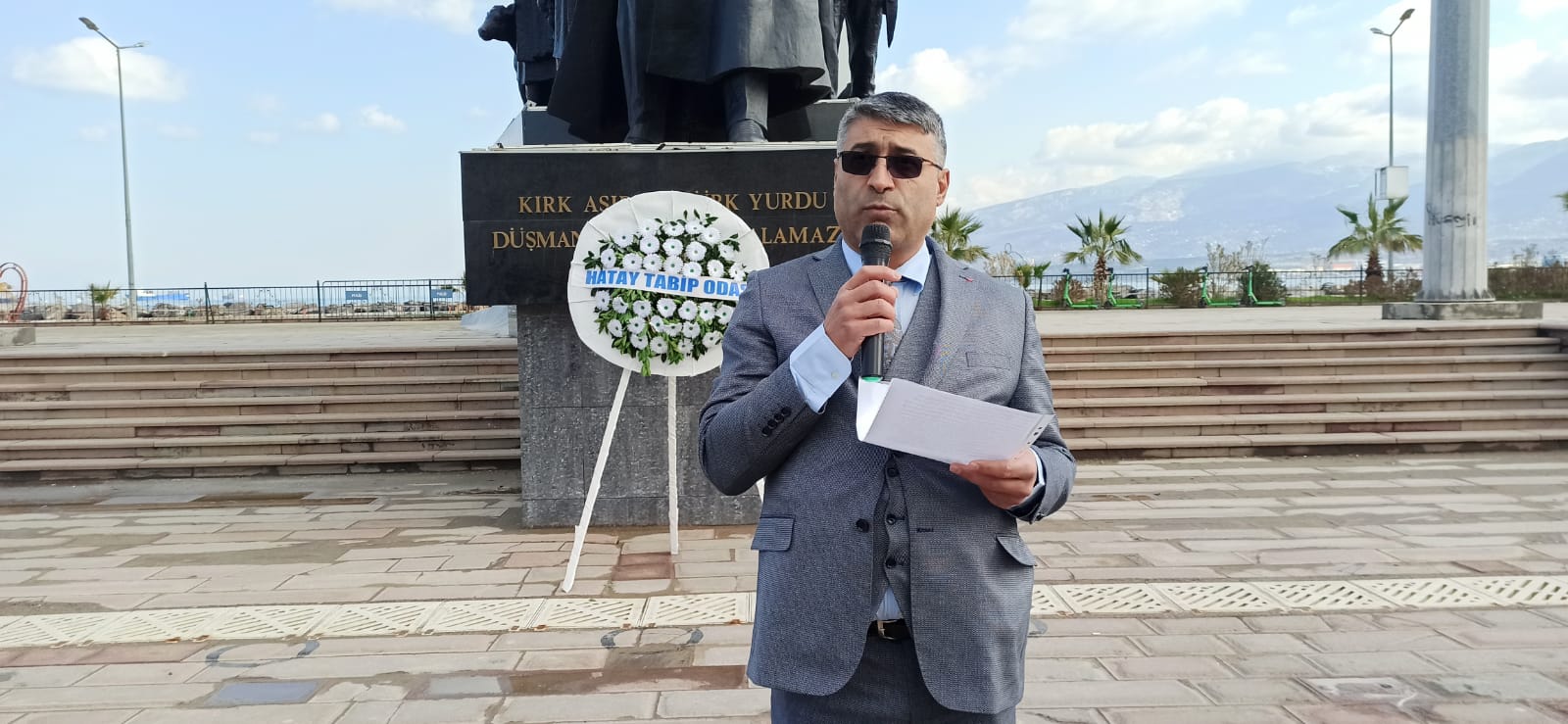 Çelenk sunumunun ardından günün anlam ve önemine uygun bir konuşma yapan Hatay Tabip Odası Yönetim Kurulu Üyesi Doğan Dalgıç; “Bugün Türkiye’de modern tıp eğitiminin başlamasının 195. yıldönümü. İlk tıp okulu 1827 yılının 14 Mart’ında kuruldu. 1919’da İstanbul işgal altındayken, tıp öğrencileri Hikmet Boran liderliğinde, modern tıp eğitiminin başladığı günü kutlamaya karar verip, kutlamayı işgal protestosuna dönüştürmüşlerdir.