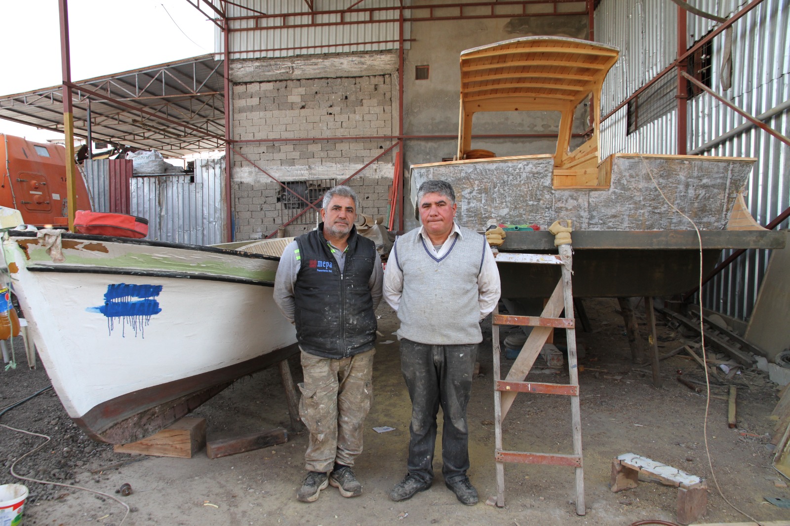 İskenderun’da 40 yıldır tekne yapım işi ile uğraşan Turgay Tekne işletmecileri Recep Turgay ve Şaban Turgay, müşterilerin taleplerine göre tekneler yaptıklarını ifade ettiler.