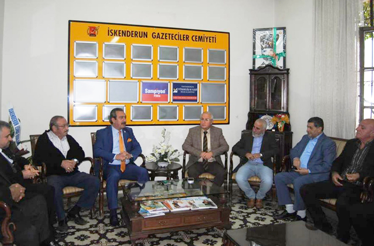 Hatay Esnaf Odaları Birliği (HESOB) Başkan vekili ve İskenderun Şoförler Odası Başkanı Erol Akın ile bazı esnaf oda başkanları İskenderun Gazeteciler Cemiyetini ziyaret ederek basın mensuplarıyla bir araya geldiler.