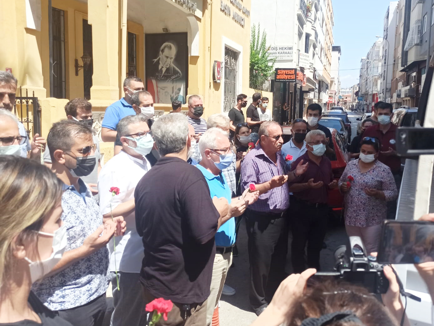Gazeteci Hilmi Diken için ilk olarak, başkanlığını da yaptığı İskenderun Gazeteciler Cemiyeti (İGC) önünde küçük bir tören düzenlendi. Cemiyet binası önünde İGC Yönetim Kurulu ve basın mensupları tarafından karşılanan Diken için dualar okundu, helallik alındı. Hilmi Diken’i, meslektaşları karanfiller ve alkışlarla son yolculuğuna doğru uğurladı.