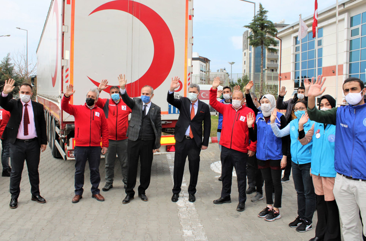 81 ilimizi kapsayan yardım projesi kapsamında İskenderun Gençlik Merkezimiz, Lojistik Merkez olarak belirlenirken, 33 ilden gelen ve çeşitli giyim malzemesi bulunan 704 adet koli gençlik merkezi personelleri ve gönüllü gençlerimiz tarafından tasnif ve kolileme çalışmaları yapılmak suretiyle Türk Kızılay’ı Yardım Tırına yüklenerek, İdlib’e uğurlandı. (Haber Merkezi)