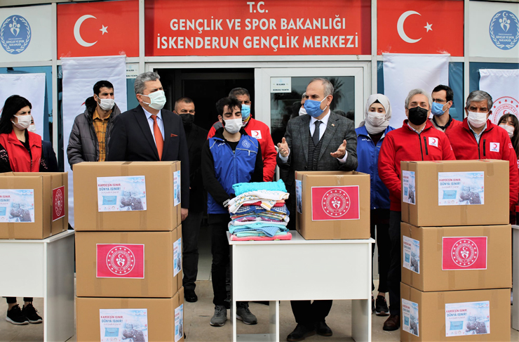 İskenderun Kaymakamı İskender Yönden, İskenderun İlçe Gençlik Merkezi ev sahipliğinde ‘Kardeşin Isınır, Dünya Isınır’ adı altında icra edilen yardım uğurlama programına katıldı.