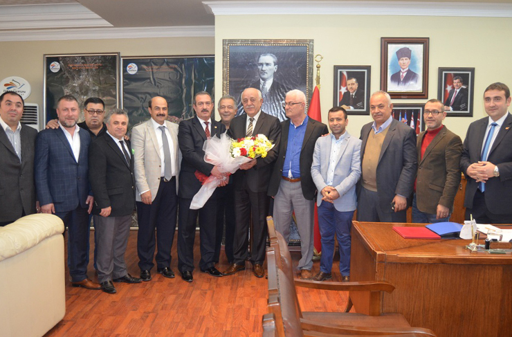 Ziyarette İskenderun Gazeteciler Cemiyeti Başkanı Veysel Cıncık, Belediye Başkanı Seyfi Dingil’e çiçek takdiminde bulundu.