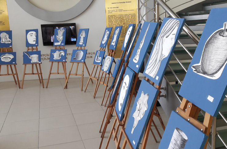 İKEM Koleji 5. ve 6. sınıfların oluşturduğu resimleri okulda sergiye açtı. Doğa, obje, portre gibi çeşitli konuların işlendiği sergide karakalem olarak eserler ortaya çıkarıldı.