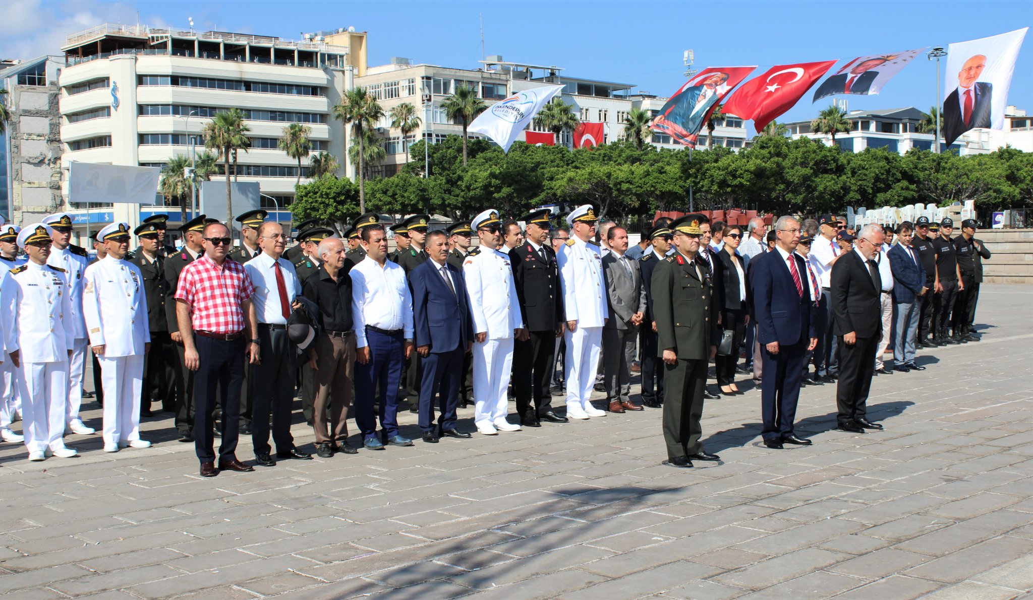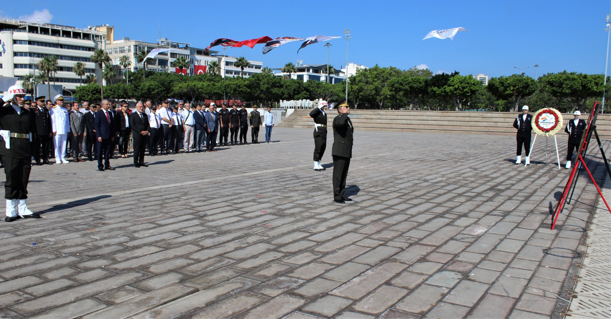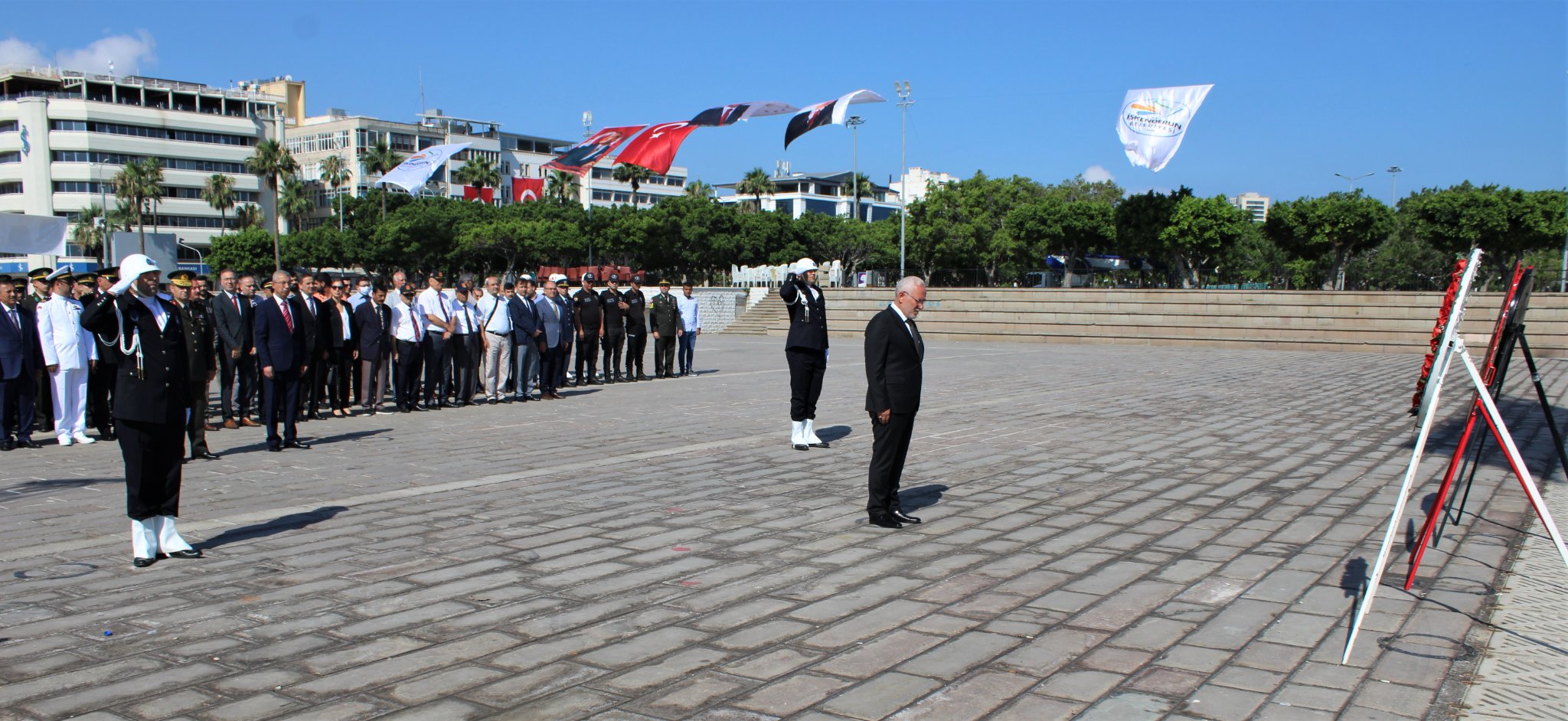 ‘Hatay Benim Şahsi Meselemdir’ diyen Mustafa Kemal Atatürk’ün hedefleri doğrultusunda, İskenderun’un anavatana ilhak oluşunun 84’ncü yıldönümü dolayısıyla düzenlenen çelenk sunma törenine Payas Kaymakamı ve İskenderun Kaymakam Vekili Dr. Polat Kara, CHP Hatay Milletvekili Suzan Şahin, Belediye Başkanı Fatih Tosyalı, askeri ve sivil erkan, siyasi parti ve sivil toplum kuruluşu temsilcileri katılım gösterdi.