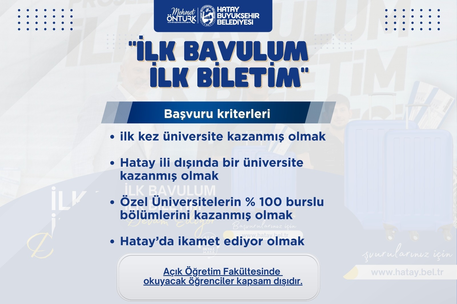 Hatay Büyükşehir Belediyesi (HBB) tarafından ilk kez üniversiteye gidecek öğrencilere destek olmak için “Hatay’ın Evlatlarına Değer” sloganıyla geçtiğimiz yıl ilk kez hayata geçirilen “İlk Bavulum İlk Biletim” projesi bu yıl da devam edecek.