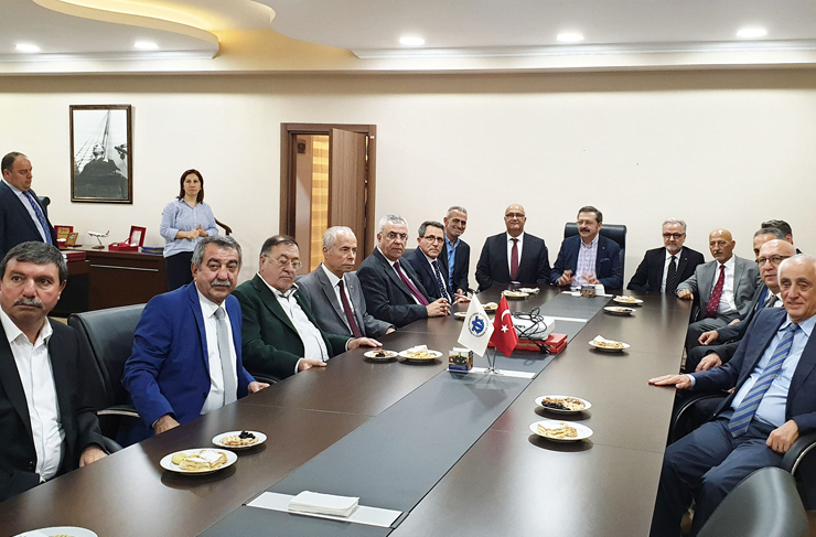 TOBB Başkanı Rıfat Hisarcıklıoğlu’nu İMEAK Deniz Ticaret Odası İskenderun Şubesi Yönetim Kurulu Başkanı Kemal Kutlu, Meclis Başkanı Adnan Yener, Sayman Üye Özhan Akgünlü ve Şube Müdürü Ahmet Taştekin karşıladı. Ziyarette Yönetim Kurulu Başkanı Kemal Kutlu TOBB Başkanı Rıfat Hisarcıklıoğlu’na oda olarak yaptıkları faaliyetleri ile çalışmalar hakkında bilgi verdi.