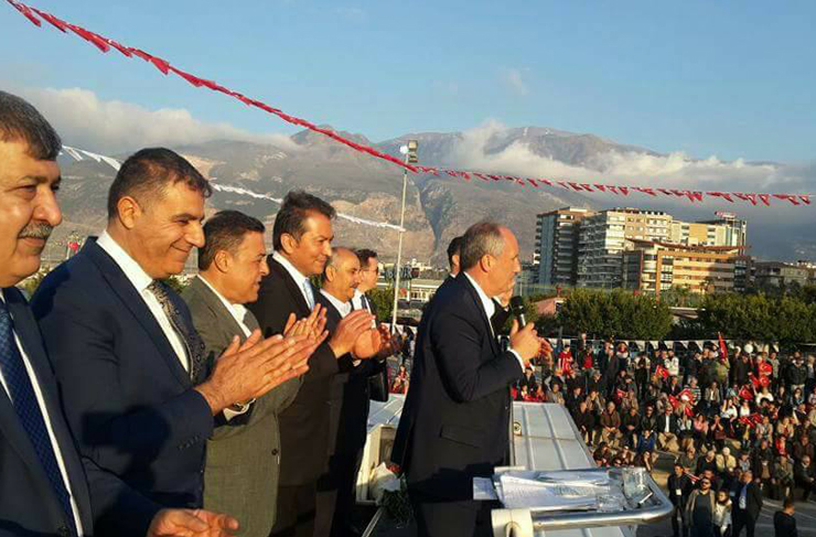Ak Parti Hatay Milletvekillerine de seslenen İnce; “Ak Parti Hatay Milletvekilleri buyursun gelsin İskenderun Meydanına, burada beraber anayasayı tartışalım” dedi.