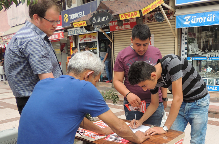 “İncirlik Üssü ABD’ye kapatılsın, Türk Ordusunun Emrine verilsin” bildirilerinin de dağıtıldığı imza kampanyasında, ABD’nin terör örgütü PKK ve PYD’ye ağır silahların verilmesine ilişkin kararına tepki gösterildi.